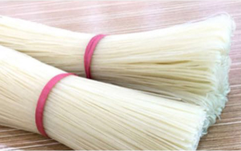 工藝流程:大米混配--加淀粉--粉碎--和料--熟化--擠絲--散絲攤薄--切斷掛桿--老化-松絲--計量入盒--定型